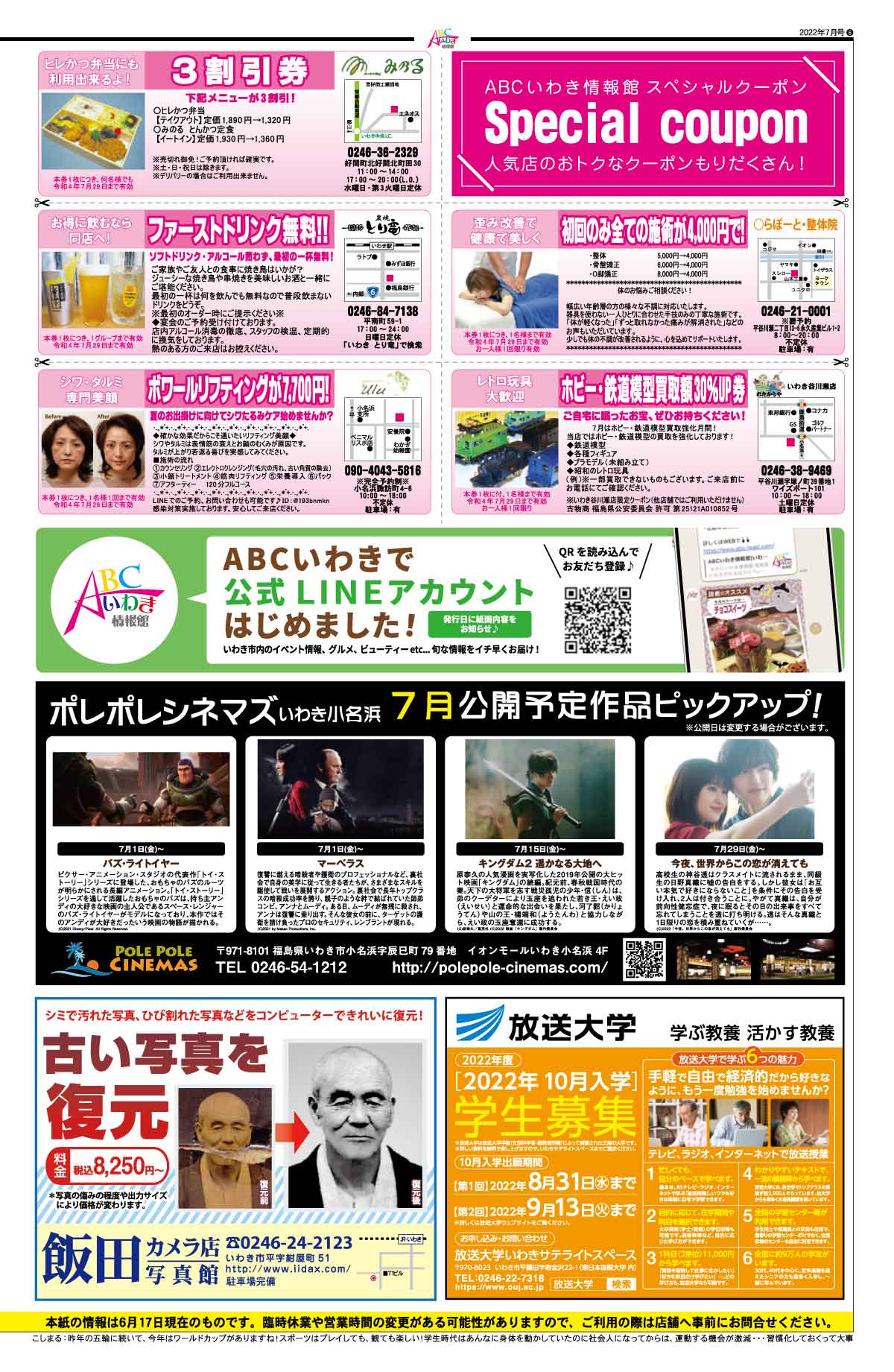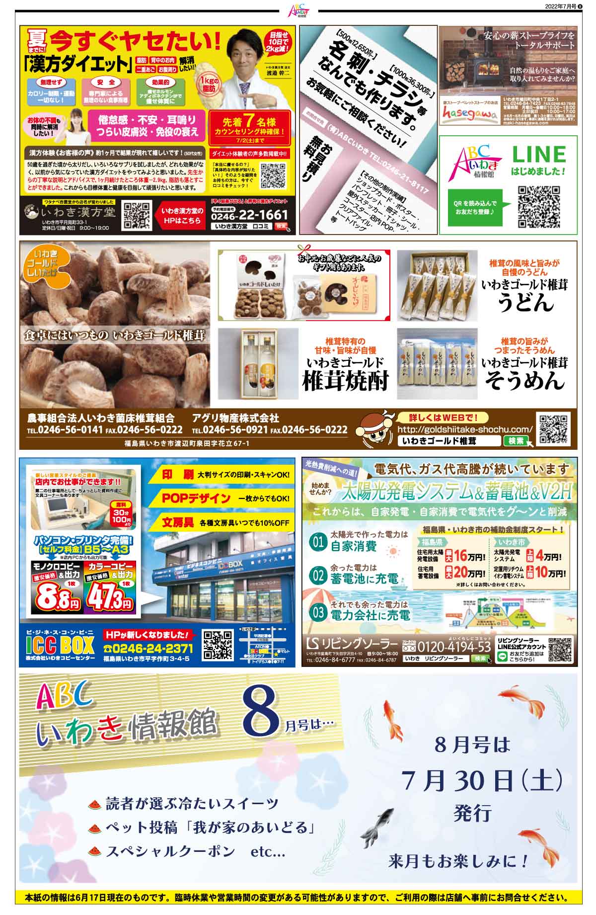 8月号は令和4年7月30日(土)発行です。