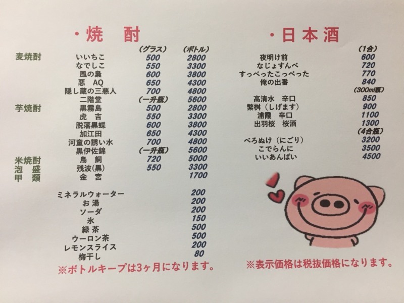 | ・米焼酎(鳥飼) | |
