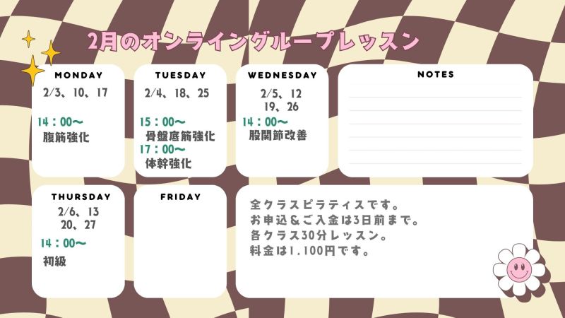 2月のオンライングループレッスン情報です!