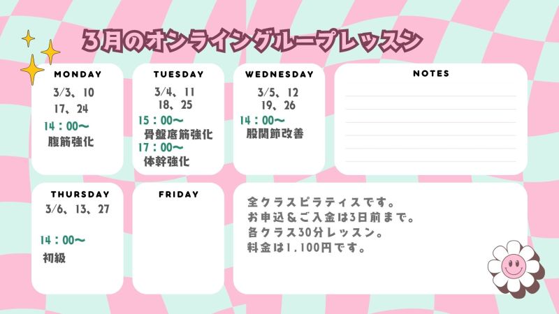 3月のオンライングループレッスン情報!