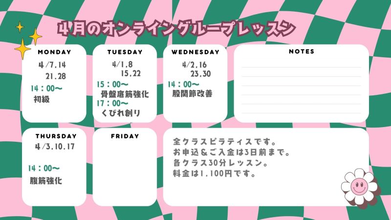 4月のオンライングループレッスン情報です!