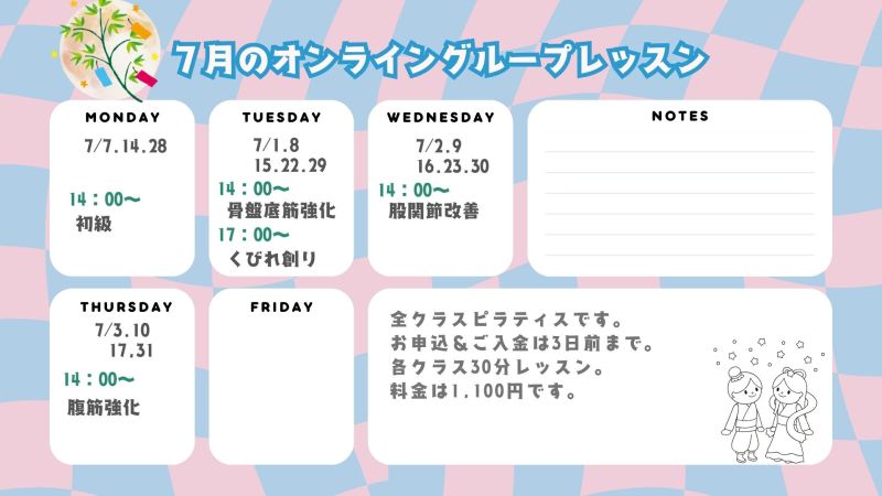 7月のオンライングループレッスン情報!