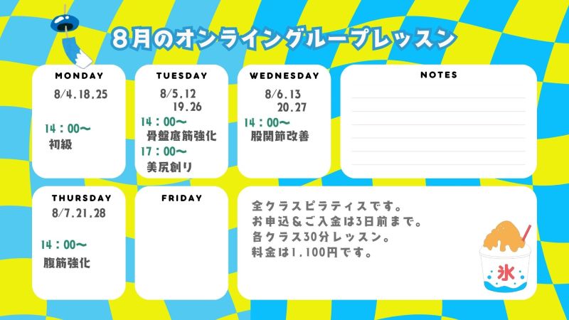 8月のオンライングループレッスン情報!