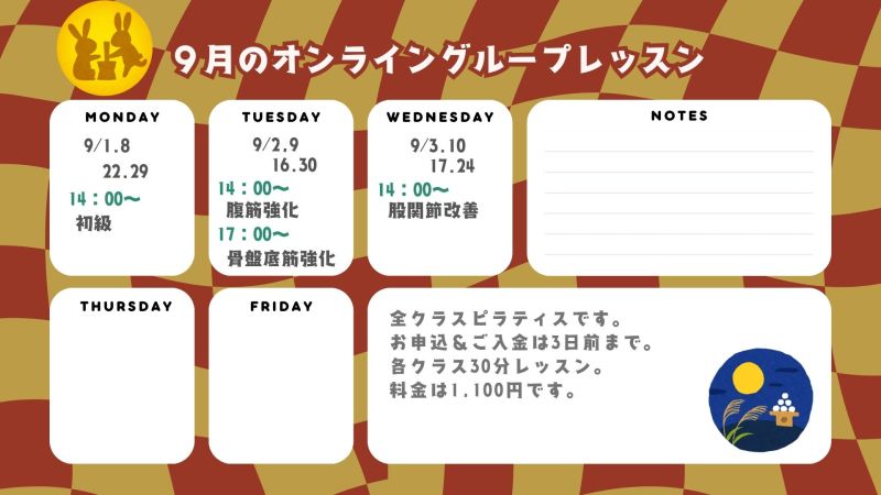 9月のオンライングループレッスン情報!