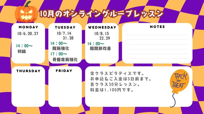 10月のオンライングループレッスン情報!