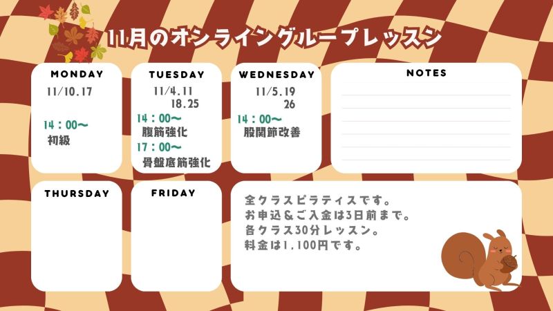 11月のオンライングループレッスン情報です!