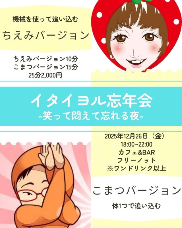 明日18時からは2025年最後のイベント、湯本にあるカフェ&BAR「フリーノット」さんで開催する「イタイヨル」の忘年会ver!